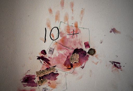 Une empreinte de main ensanglantée tache le mur d’une maison de Nir Oz après que des terroristes du Hamas ont attaqué ce kibboutz quelques jours plus tôt, près de la frontière de Gaza. (Alexi J. Rosenfeld/Getty Images)