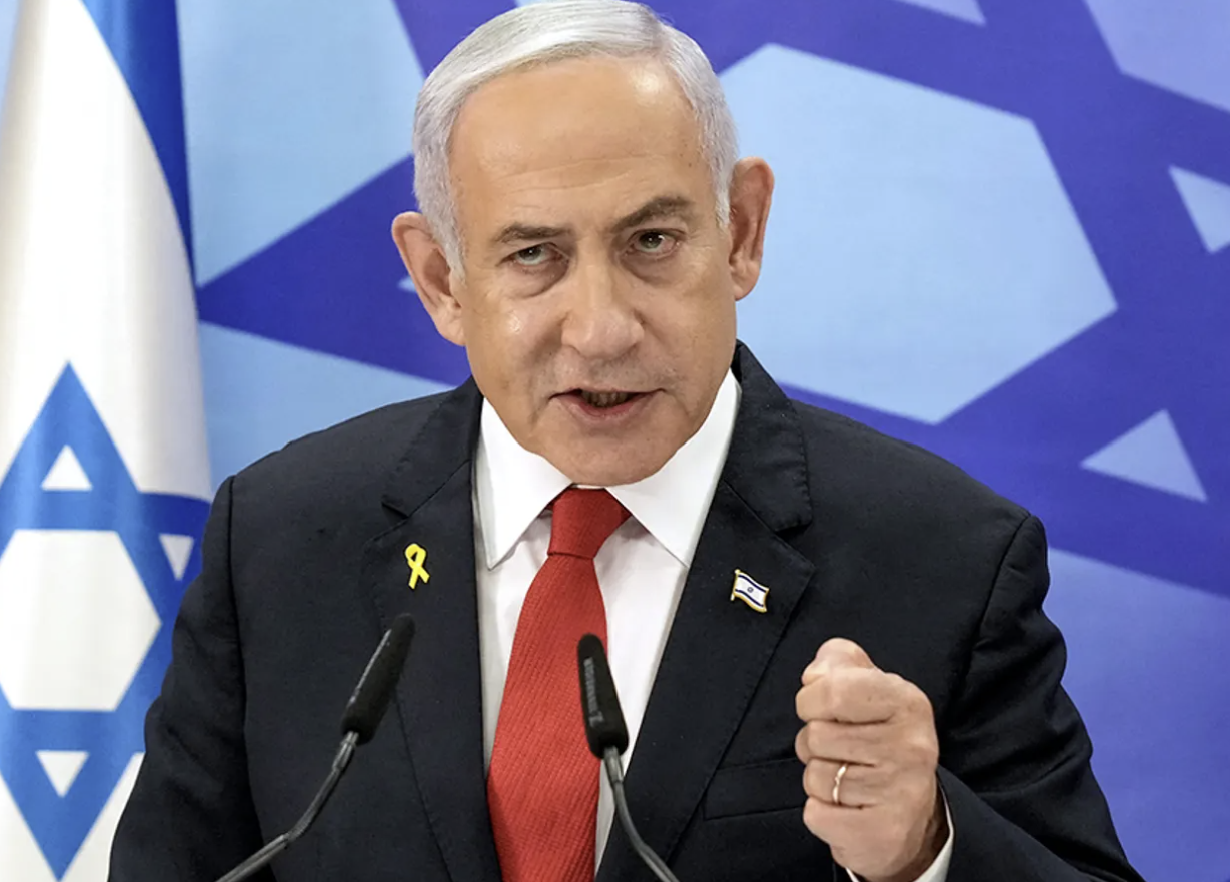 Le Premier ministre israélien Benjamin Netanyahu s’exprime lors d’une conférence de presse à Jérusalem, le 9 décembre 2024. (Maya Alleruzzo/Pool/AFP via Getty Images)